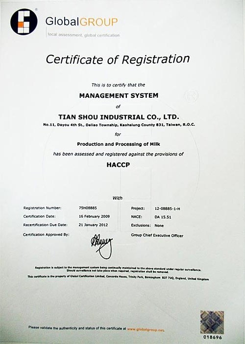 Document No. 188 of Dairy Association Taiwan, R.O.C.- Five Plum Award of「2006 dairy ranch evaluation」.