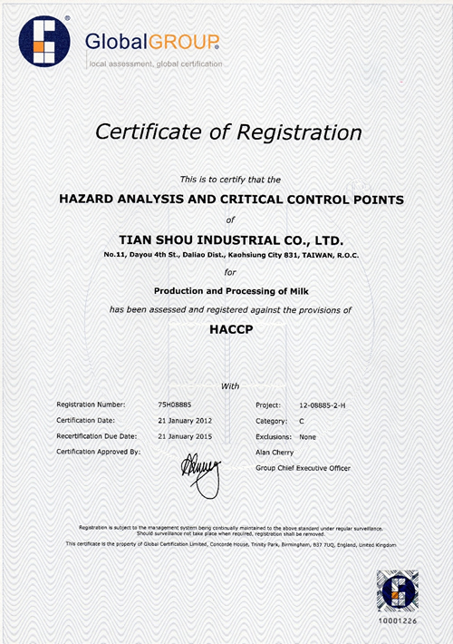 Certificated by HACCP UK for food safety and hazard analysis control system.