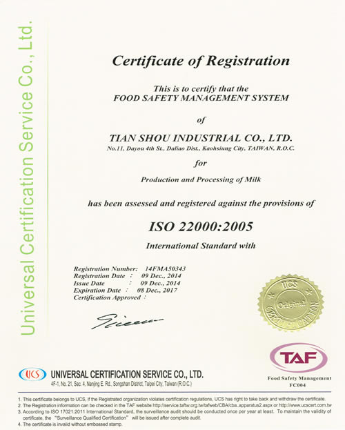 Certificated by Germany ISO 22000 food safety management system and food safety.