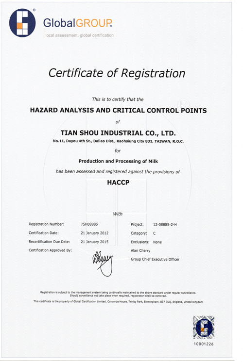Certificated by HACCP UK for food safety and hazard analysis control system.