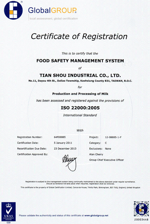 Certificated by UK ISO 22000 food safety management system and food safety.