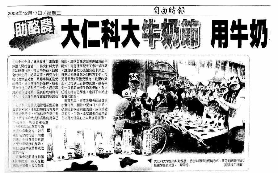 自由時報 - 助酪農大仁科大牛奶節以國農牛乳傳達情意