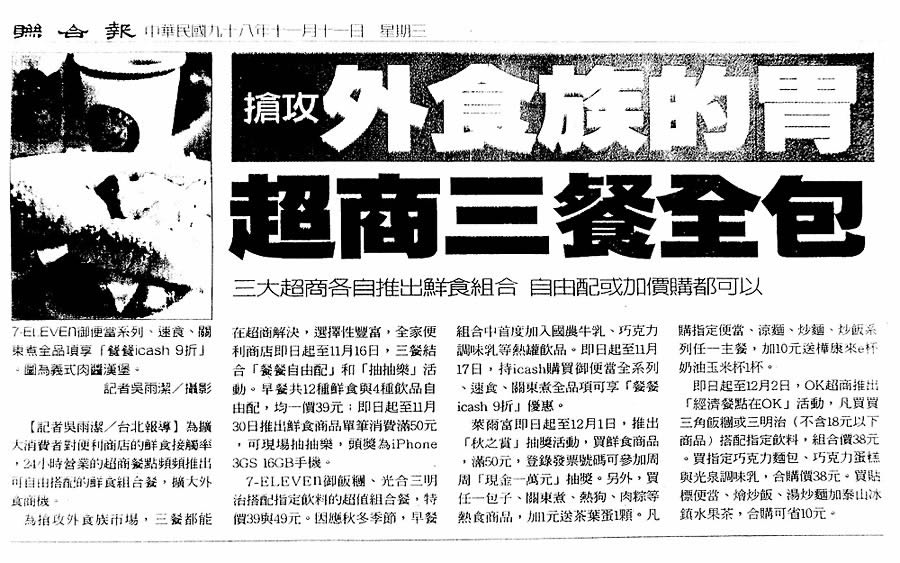 聯合報 - 搶攻外食族 7-11超值早餐組合加入國農鮮乳